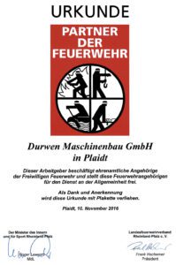 since 2017 Partner of the local fire brigade: Supporting the fire brigade of Plaidt to enable immediate operational readiness on regular weekdays