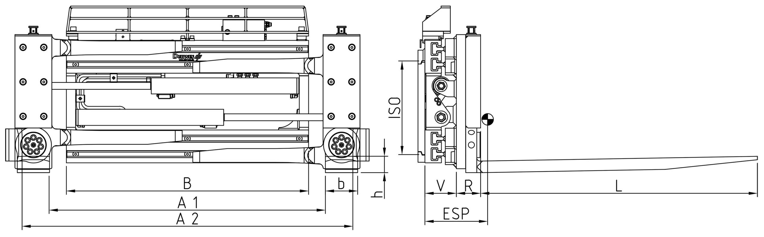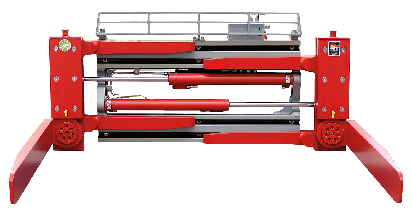 The clamp with turnable forks DGK allows for flexible use of forklift trucks. The fork on this attachment can be converted manually from pallet to clamp position. Loads standing close together can be clamped easily. Pallets can also be handled simply with forks in the normal position. The attachment is not recommended for heavy duty clamp jobs and clamping with forks in the pallet position is not allowed.