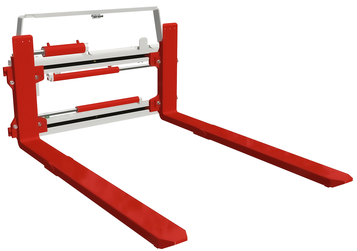The sideshifting fork positioner PZV-S-TGZ uses T profile guides. Compact design offers reliability and excellent operator visibility. The constant sideshift operates at any fork position. The combined telescopic forks support faster and safer work due to ideal support of the transported goods. Single side loading is enabled as well. The forks are positioned hydraulically in your daily operation, however the pre-set position of the forks on the carrier can be changed due to the bolted fork stops. Under the table you find the minimum pre-set position available inside to inside fork shanks.