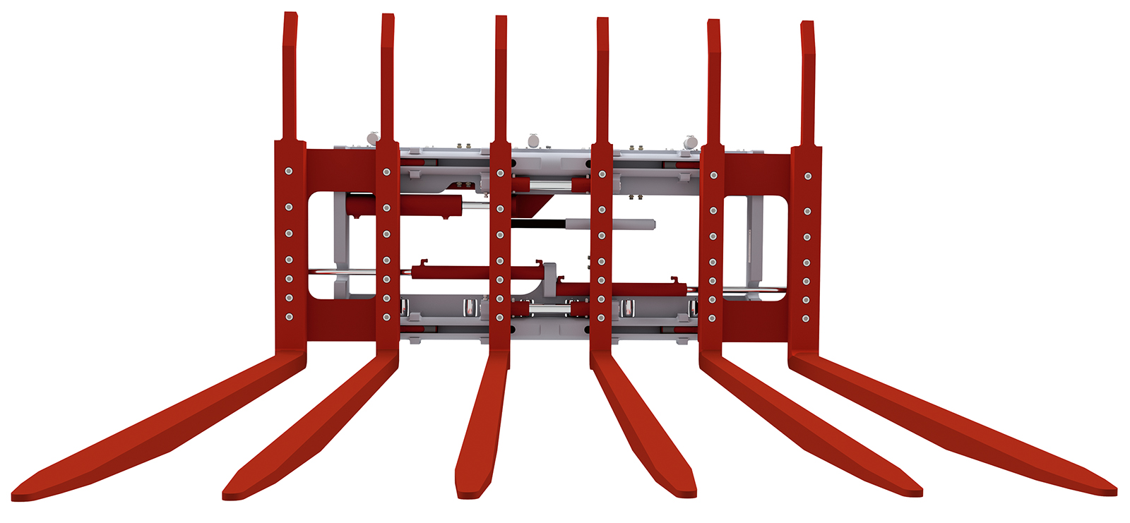The multiple fork positioner SPK-C is ideal for picking up and transporting 4 or 6 pallets at one time. Despite the stable and robust construction it offers excellent visibility to the operator. The outer forks spread beyond the attachment frame width.