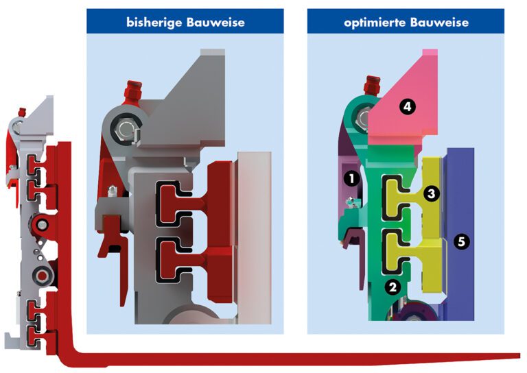 - 1: optimierte Seitenschubeinheit für geringeres Gewicht