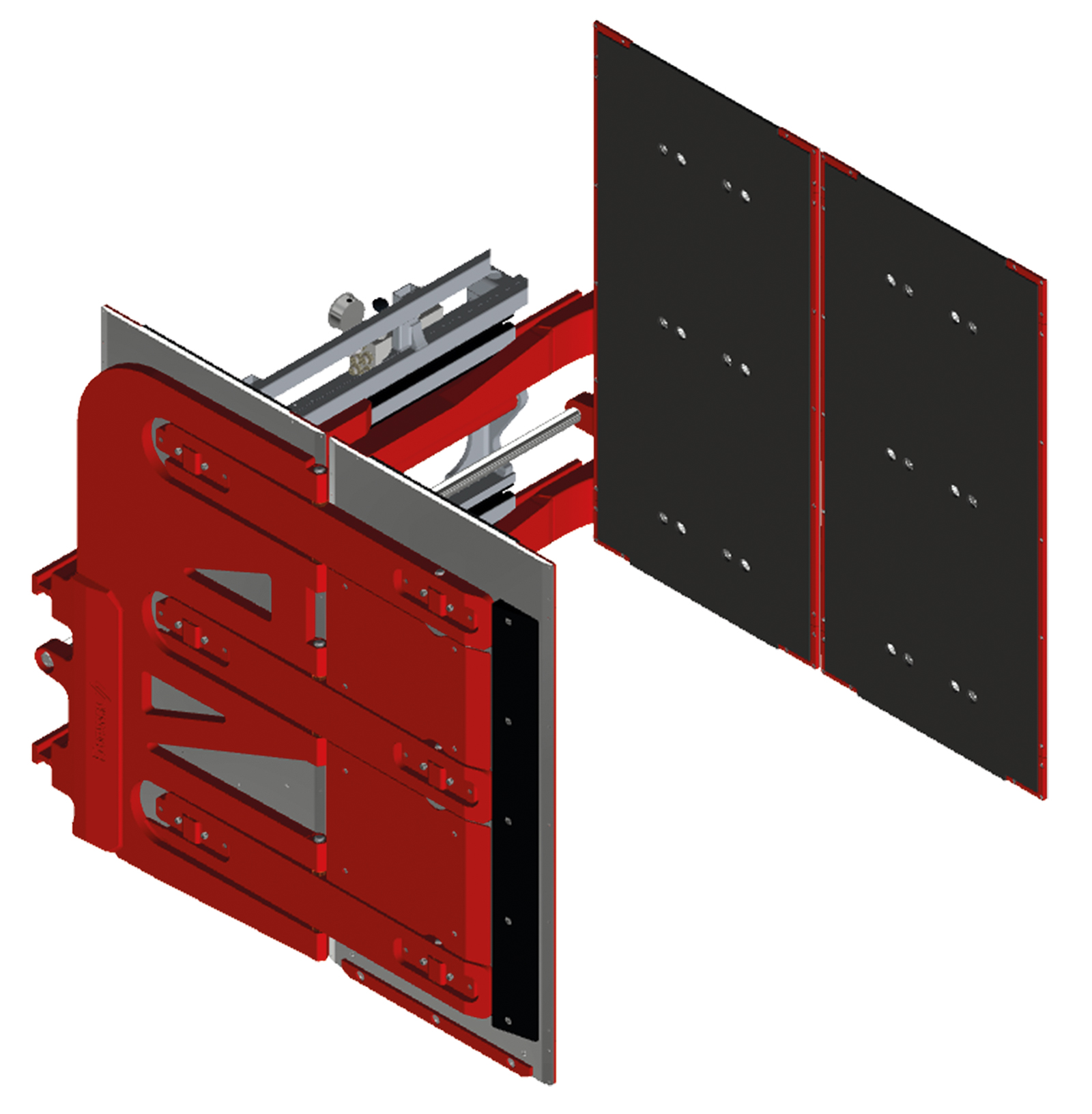 Beim Bautyp PD handelt es sich um eine Kartonklammer mit doppelt pendelnden Armen. Bei diesem Gerät ist die Greiffläche zusätzlich in der Mitte getrennt, wodurch eine vordere und eine hintere Teilfläche entstehen. Jedes dieser Teilstücke kann sich ebenfalls um die Hochachse bewegen. Dieses Gerät wird verwendet wenn üblicherweise zwei Produktreihen hintereinander gegriffen werden sollen. Hierbei wird sowohl die Kraft auf die einzelnen Reihen optimal verteilt, als auch auf der Reihe selbst erfolgt eine gleichmäßige Kraftverteilung. Der Klammerarm bietet eine bestmögliche Anpassung an das Transportgut und hilft somit die Belastungen auf die Ware zu reduzieren und Beschädigungen der Verpackung weitestgehend zu eliminieren.