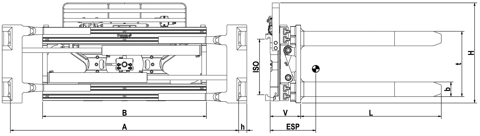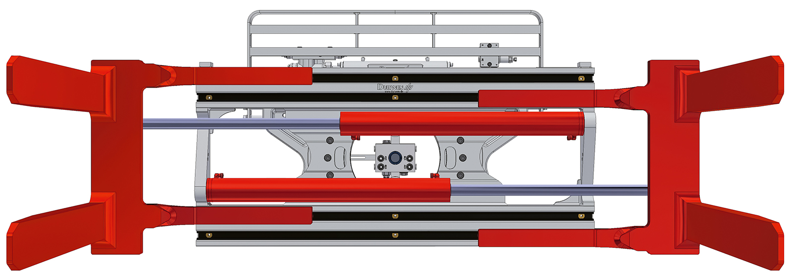 Die Palettenwendeklammer Typ PWK dient zum Wechseln von Paletten und zum Drehen von palettierten Gütern. Die Drehvorrichtung basiert auf dem Durwen Drehgerät mit Schneckenrad-Schneckenwelle-Antrieb. Die beiden Gabelpaare sind auf einen festen Gabelpaarabstand (t) eingestellt. Serienmäßig ist das Gerät mit einem Gleichlaufmengenteiler ausgestattet. Das Gerät dreht 360° endlos.