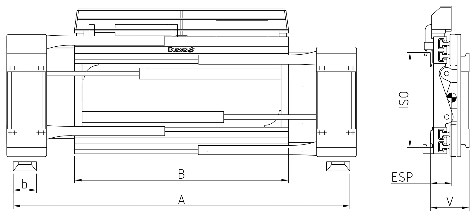 Das Durwen Zinkenverstellgerät Typ ZVP-AS auf Klammerkörperbasis kann bei Baubreiten die der Staplerbreite entsprechen sollten, den Gabelabstand hydraulisch über die Staplerbreite hinaus verstellen. Diese Version wird ohne Gabelzinken geliefert. Es können handelsübliche Gabelzinken an den ISO Trägerplatten eingehangen werden (ISO 2328). Dieses Gerät eignet sich für Anwendungen, bei denen unterschiedlichste Verstellbereiche von der Europalette bis zur Aufnahme von Langgutmaterialien, gefordert werden. Das Gerät ist nicht zum Klammern geeignet. Die ZVP-AS Baureihe ist serienmäßig mit separatem Seitenschub ausgestattet, d.h. Seitenschub bei jeder Gabeleinstellung.